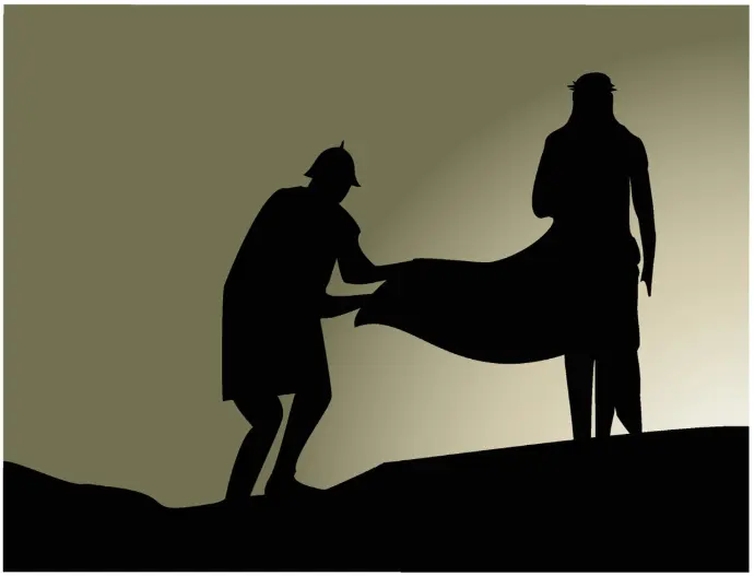 Szymon z Cyreny pomaga nieść krzyż Jezusowi